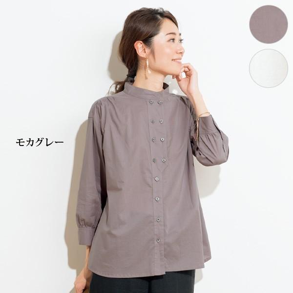年中無休 レディース トップス ブラウス 長袖 ボトルネック ハイネック 斜めボタン シャツ ゆったり 一癖効いたボトルネックトップス 2月25日0時 再販 メール便不可 変形 絶妙ネックラインに斜めボタン